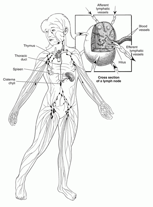 Figure 2: Abnormal lymphocytes travel via the lymphatic system in lymphoblastic lymphoma / leukemia.