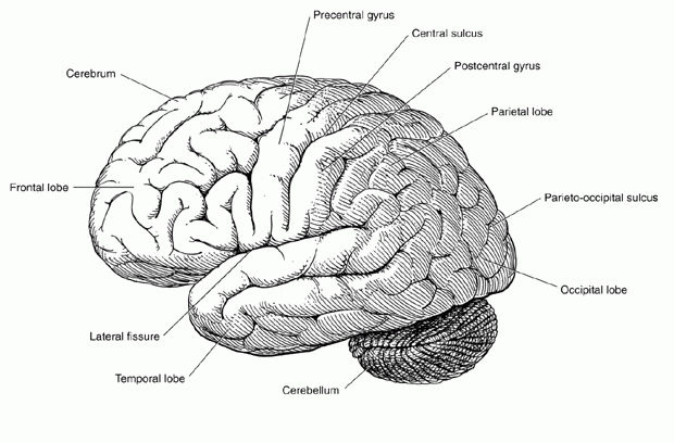 The brain’s white matter lies beneath the brain’s outer cerebral cortex (see Figure 2 below), or “gray matter” that is composed of brain cells (neurons). Most of the volume of the brain is made up of cerebrospinal fluid-filled cavities and white matter. Since the white matter carries information to and from the cortical neurons composing the gray matter, the function of the gray matter can easily be affected by white matter abnormalities. For example, an impulse to move a leg that starts in the motor cortex of the brain could be disrupted when it enters the white matter for transmission to the spinal cord.